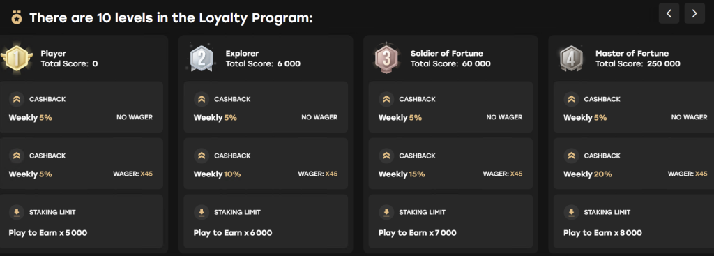 - Nivå 1-3 (Explorer til Master): Økende rakeback-prosenter og tidlig tilgang til nye spillutgivelser.